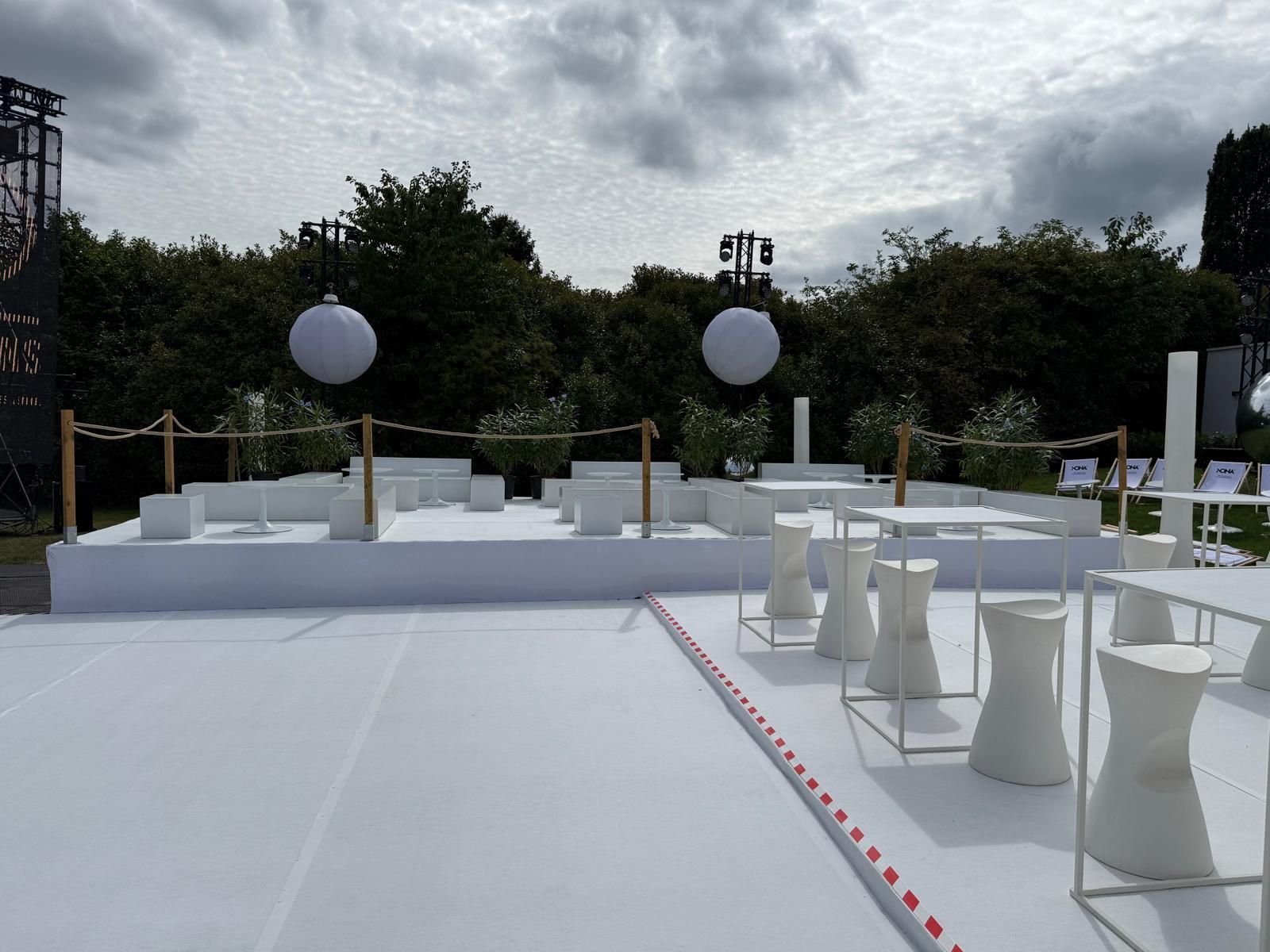 - Opbouw van verhoogde witte platforms en dansvloer